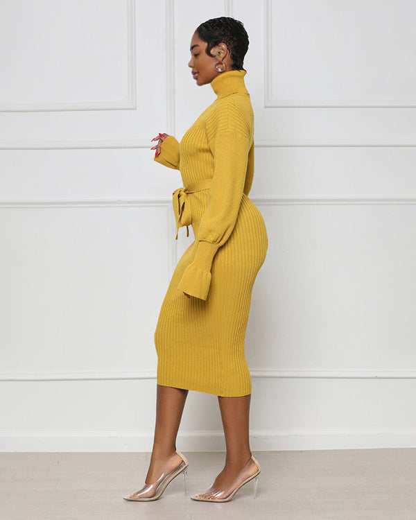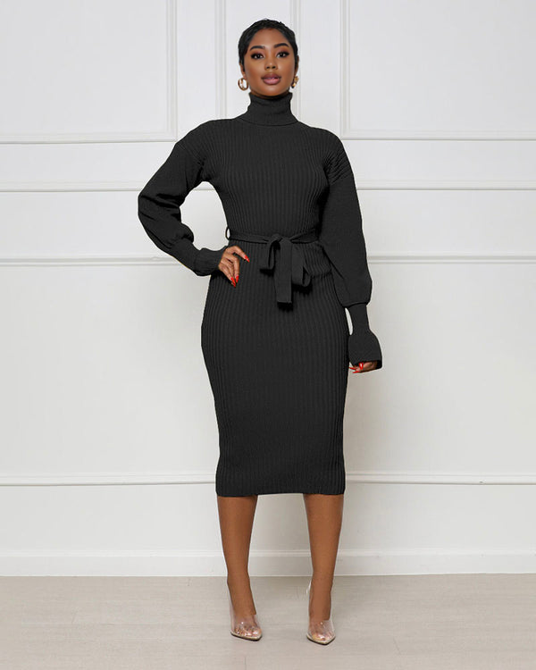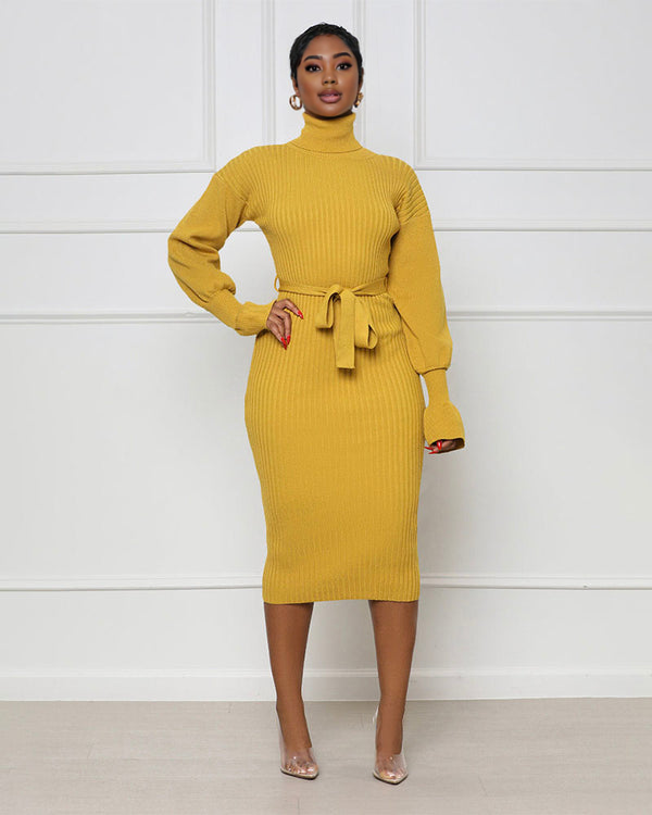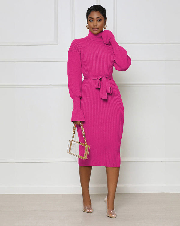 No wardrobe is complete without a sweater dress! This Fine Line High Neck Sweater Dress is a must-have addition to your winter wardrobe, with its versatile color and style. It comes in multiple colors, with a turtle neckline, long balloon sleeves with bell cuffs, and high stretch material that hugs your curves perfectly to create an alluring look. Wear this sweater to brunch or out on the town—you’re sure to turn heads either way!
